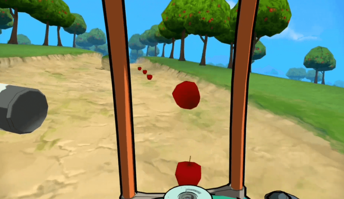Gameplay: Ride a bike in a post-human future to collect apples for biofuel, learn about the world from robots, and uncover mysteries related to the anime's story.